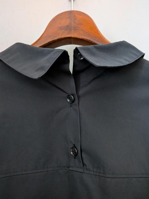 フロントボタン、後ろ首元のボタンを開けると女性らしいスタイルに